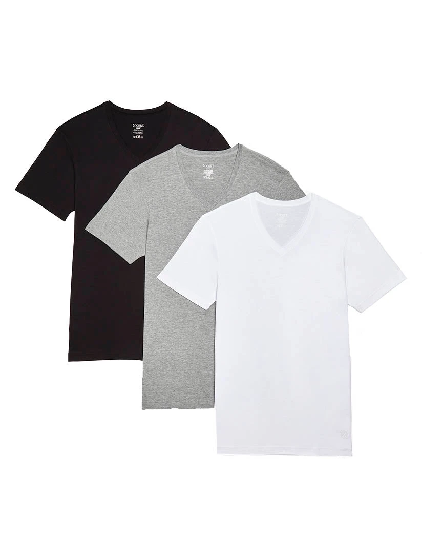 Stock up on a classic tee and a body-conscious fit with the 3-Pack Essential Range Jersey V-Neck T-Shirt from 2(X)IST. Made of soft breathable cotton, it features a banded v-neck and short sleeves. Available in a convenient 3-pack, get more of what you want with the Essential Range collection.