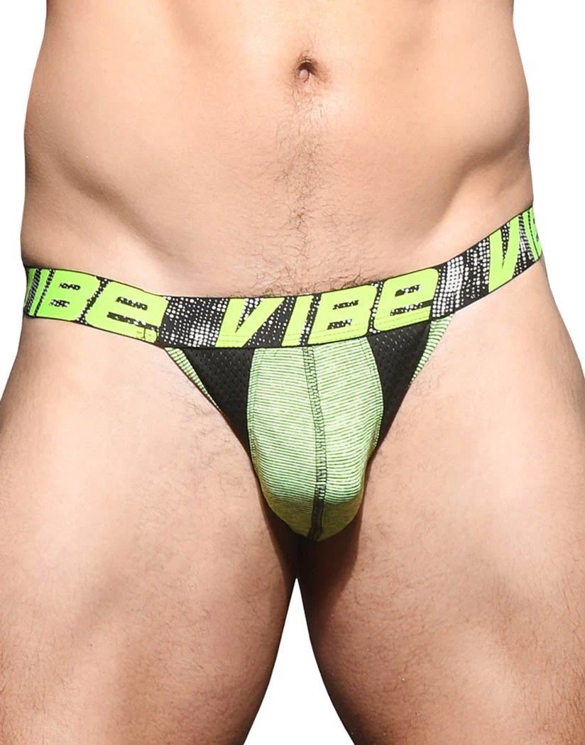 The Andrew Christian Vibe Sports Mesh Jock is the perfect athletic underwear. The jockstrap style underwear has patterned fabric with color contrast details. Mesh fabric surrounds the pouch for increased airflow and breathability. The wide, exposed elastic waistband falls flatteringly below the waist while 2 back straps provide an additional boost and security. This jockstrap has a Hang-Free Pouch with Fun Snuggle Fit for natural protection that never squeezes or squishes you. Shop this limited edition style now before itβs gone.