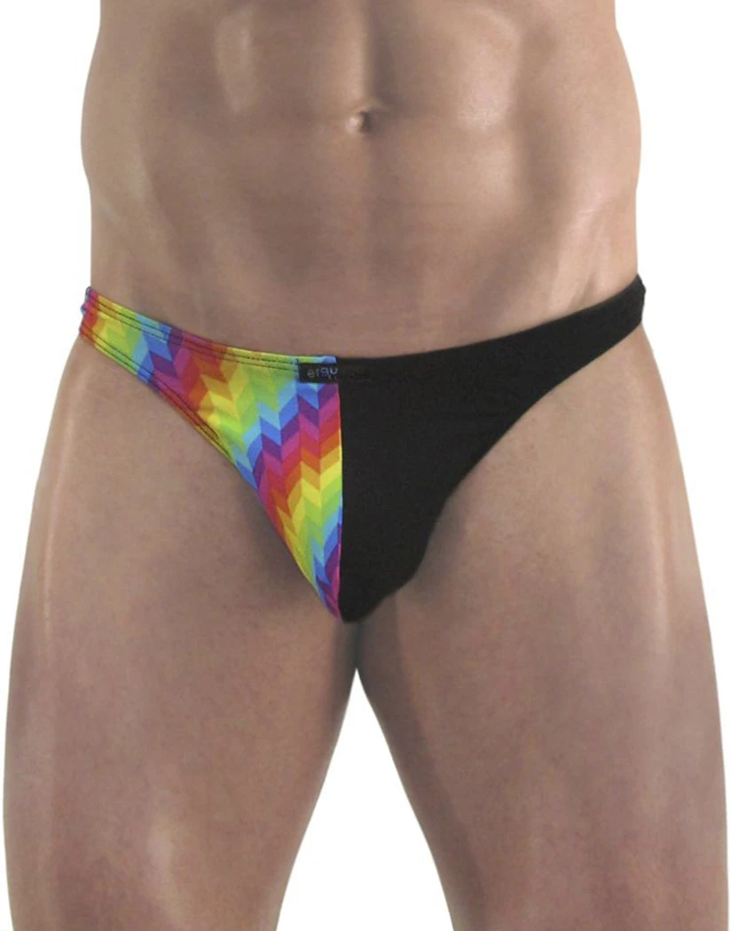 A sleek, all black design with a rainbow detail adds a fun update to traditional men’s underwear.