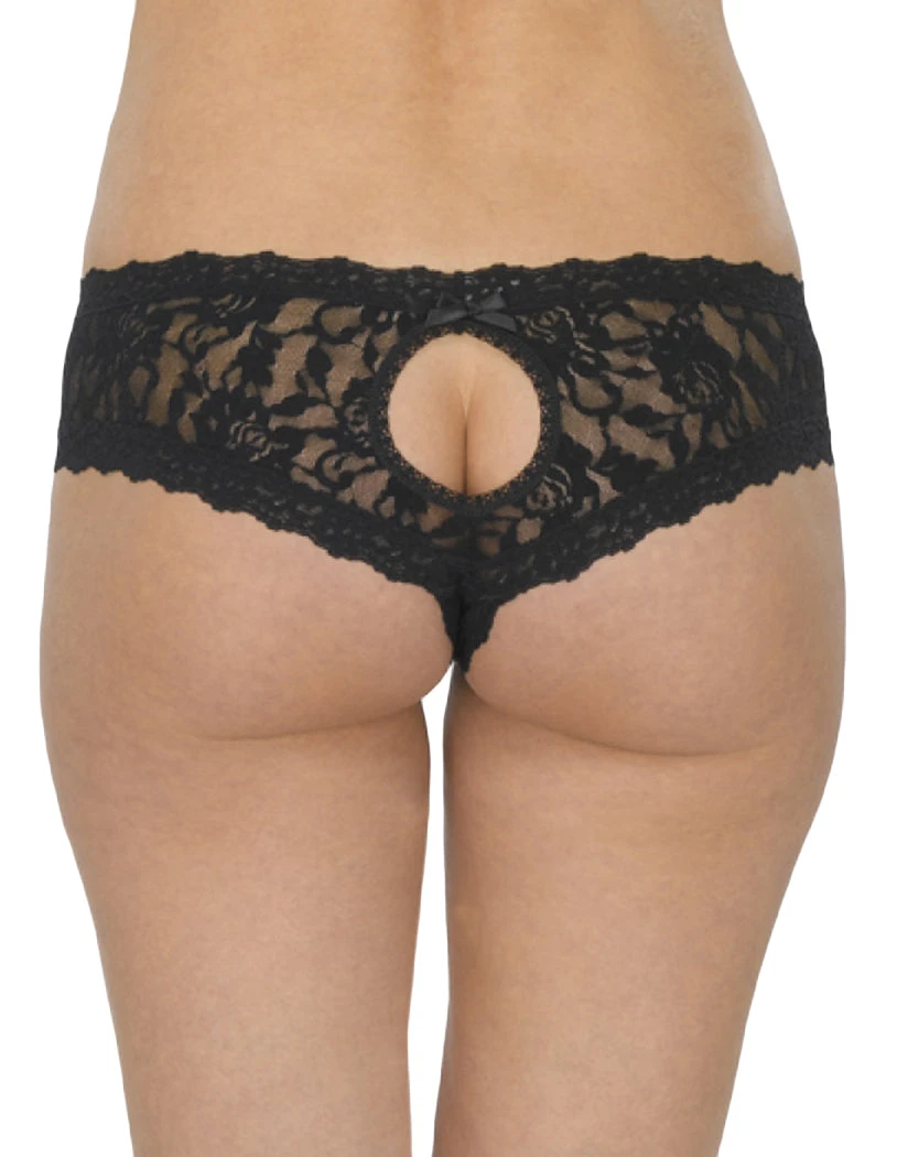 The element of surprise is a powerful thing – so exercise your control with these Hanky Panky After Midnight Crotchless Hipster with Keyhole. Designed with Hanky Panky’s signature lace, these seductive-crotchless panties offer a smooth, soft touch and a risque yet elegant look, ideal for the bedroom. PLUS a trendy, sexy keyhole back to show off your best asset.