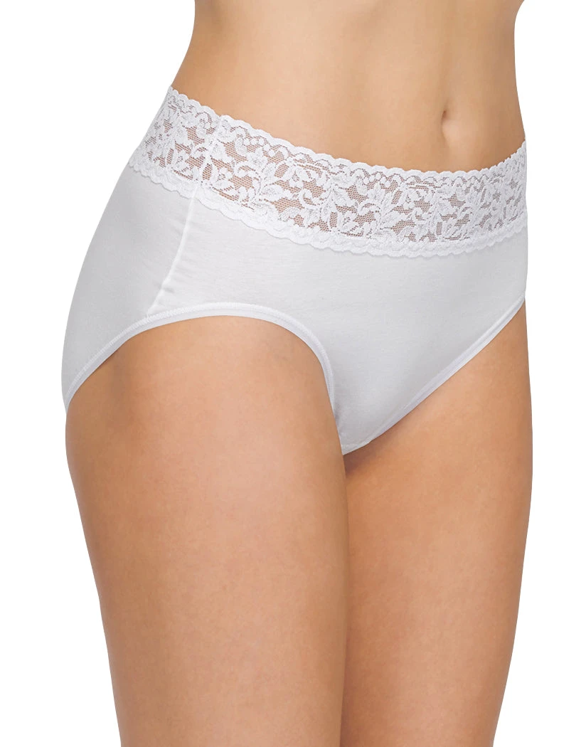 The Hanky Panky Cotton With A Conscience French Brief is created from super soft fabric and trim to ensure Hanky Panky’s signature fit, comfort, and quality. This brief panty offers feminine style and full coverage with a lovely lace waistband.