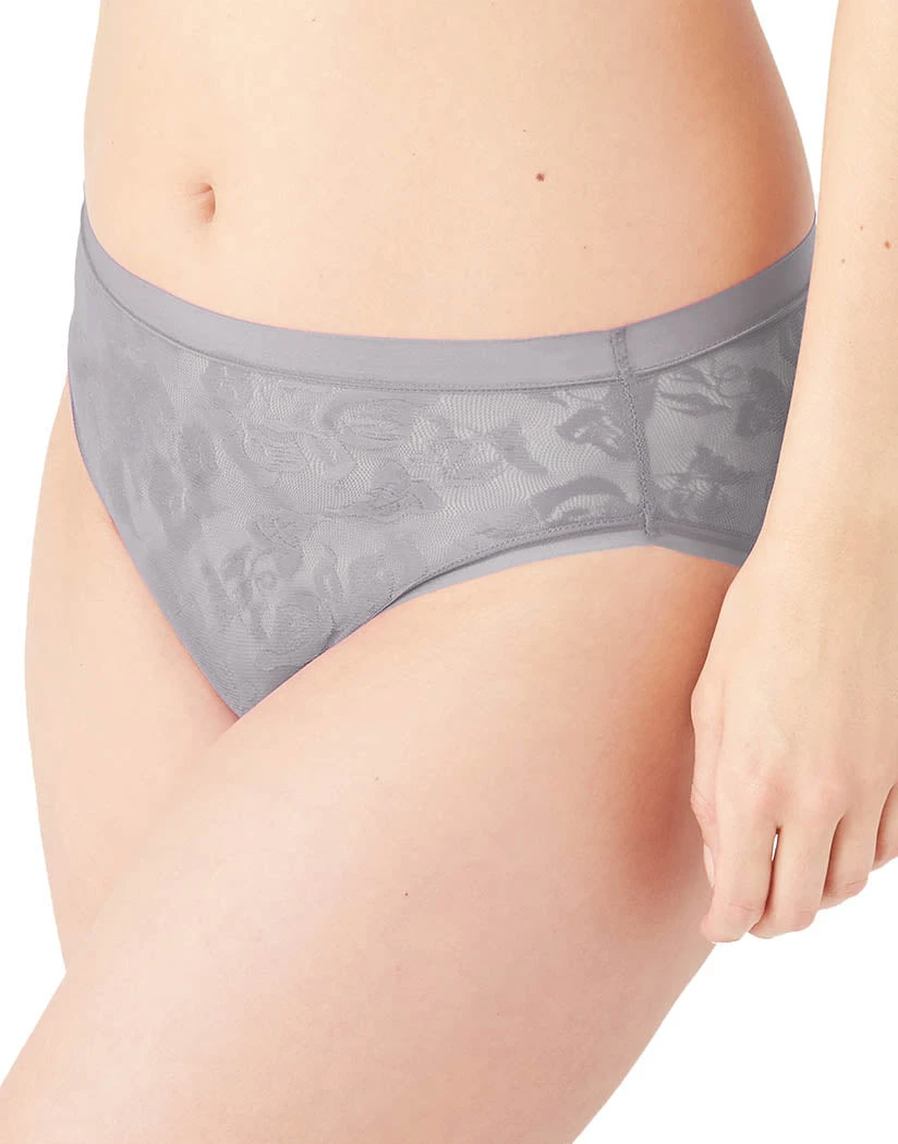 The Wacoal Awareness Hi-Cut Brief features high-cut legs for a flattering, lengthened appearance. It is made of sheer, floral jacquard fabric, and offers full coverage. The thin elastic edges at the waistband and leg openings create a finished look, free of panty lines. The stretch fit molds to your body’s curves, while the hi-cut silhouette makes for a slender waist and tummy.
