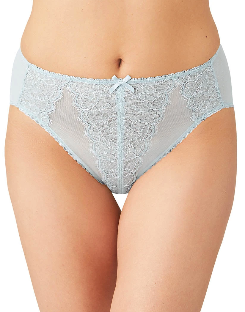 You’re guaranteed to look fabulous in the Wacoal Retro Chic High Cut Brief because it features a hidden tummy-smoothing panel. It’s made from exquisite stretch lace, inspired by vintage lingerie. It offers full coverage in sheer, lightweight mesh. The high-cut legs lend the illusion of longer legs. Add some glamour to your Dy with the Wacoal Retro Chic High Cut Brief. Pair with the matching Wacoal Retro Chic Full Coverage Underwire Bra 855186.